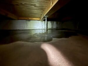 現地を確認したところ、当日は雨ということもあり、雨水が床下に流れ込んで湿気がこもった状態に。