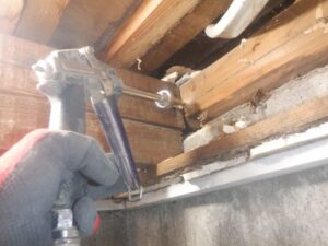 そこで、被害が広がらないように薬剤の散布と注入による防除処理を実施。木材の内部まで薬剤をしっかり浸透させ、内部に潜むシロアリまで徹底的に駆除しました。