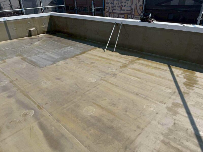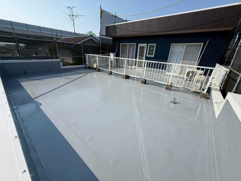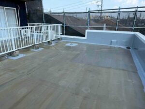 屋上の塗装は通常防水性能のある塗料の重ね塗りをおこなったうえで、最後に防水層を保護するためのトップコートが塗られています。