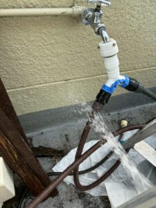雨漏り原因特定検査とは、ホースなどを使用しながら実際の雨のように一定時間水をかけることによって、雨漏りの原因となっている箇所を探る検査のことです。