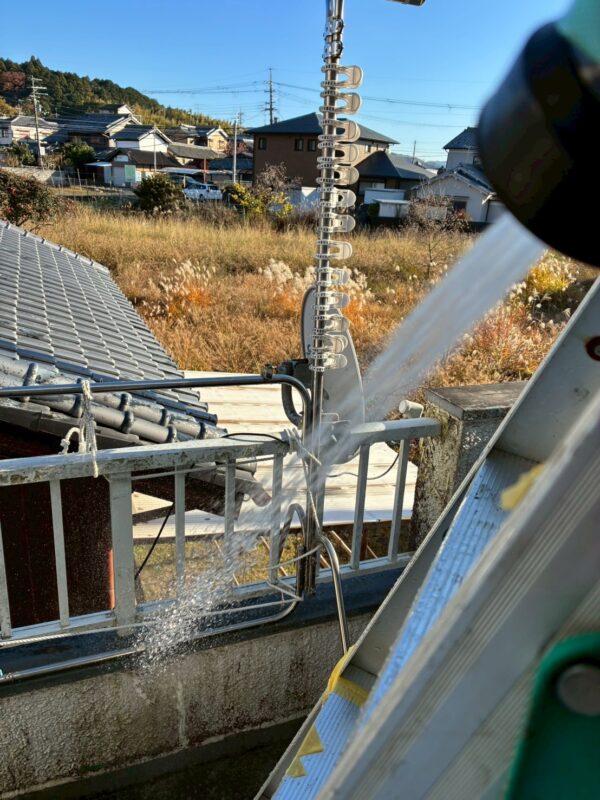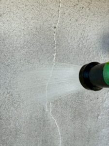 一か所あたり最低でも30分から1時間ほど水をかけ、雨漏りになるかどうかを探っていきます。