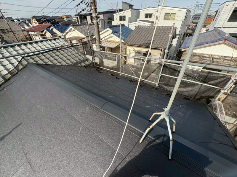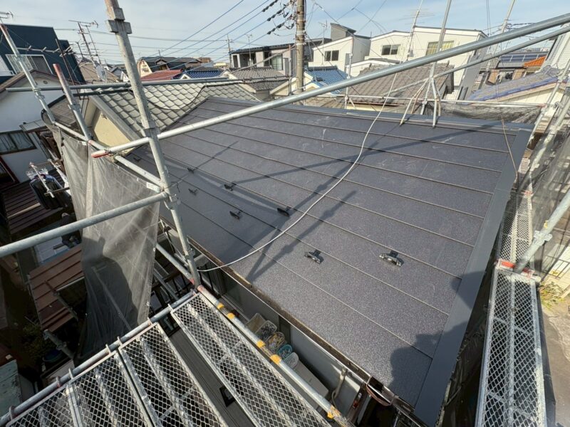新しい屋根材は「スーパーガルテクト」を使用しています。