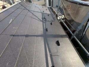 築50年を超えた瓦屋根といことで、下地の穴や、漆喰の劣化がありましたので、瓦をすべて撤去したうえで新しく野地板を設置し、屋根材「スーパーガルテクト」を設置させていただきました。