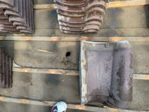 瓦を取り外すと、下地に穴が開いている箇所が見つかりました。