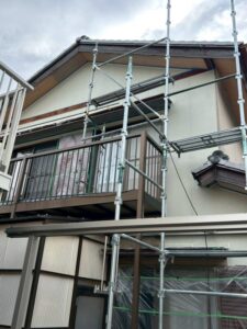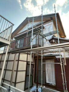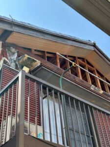 ベランダが取り付けてある外壁部分からの雨漏りでお困りでしたので、外壁を下地から補修させていただき、これ以上雨水が侵入しないよう透湿防水シートを設置させていただきました。