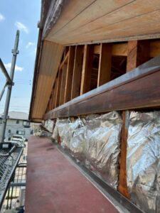 外壁から雨水が入り込んでいたたため、外壁の捲って透湿防水シートを貼って張り替えさせていただきました。