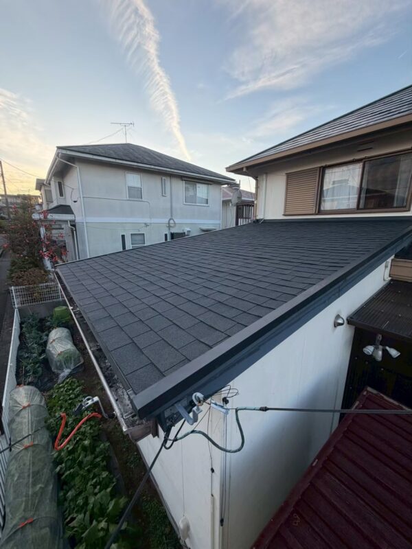 使用いたしましたアスファルトシングルは、軽く耐震性にも優れているため、もともとは北米で普及されていましたが、近年急速に日本でも広く使用されるようになった屋根材です。