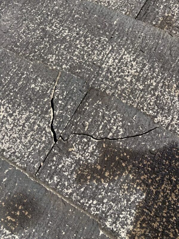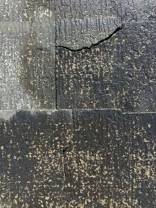 現地で拝見させていただくと、屋根材の一部が大きく割れており、その亀裂部分から雨漏りをしていることが判明いたしました。