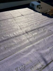 カバー工法での工事ですので、古い屋根はこのまま残し、その上から防水シート、新規屋根材を設置いたします。