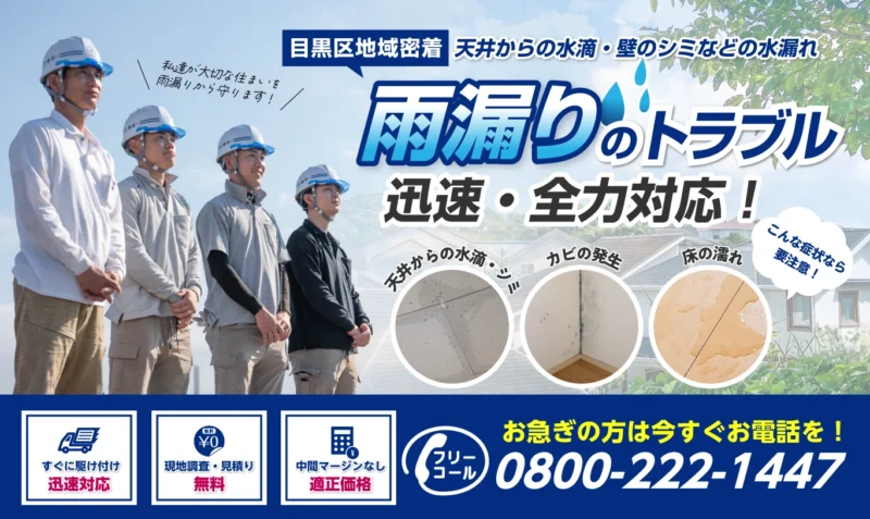 良心的な価格と高品質施工を心がけておりますので、目黒区近郊で雨漏り修理や外壁塗装、屋根塗装をご検討ならぜひお気軽にご相談ください。
