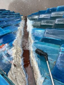 座間市でスレート屋根塗装〈苔・鳥の糞による劣化を高圧洗浄とラジカル塗料で保護〉